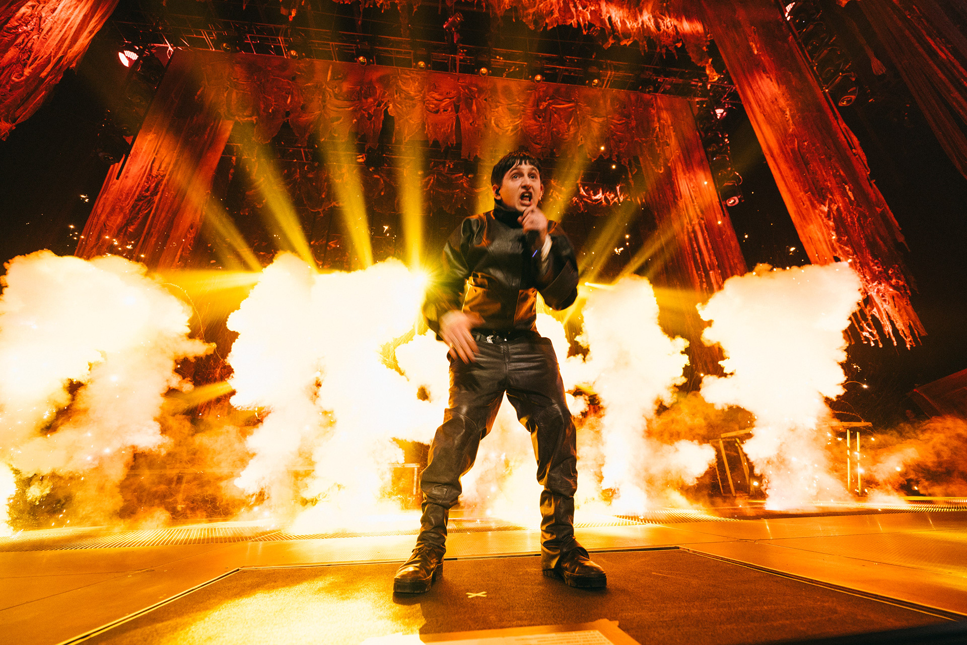 The result is a theatrical yet raw experience, balancing intensity and precision while maintaining coherence across large-scale venues such as Movistar Arena and Luna Park.